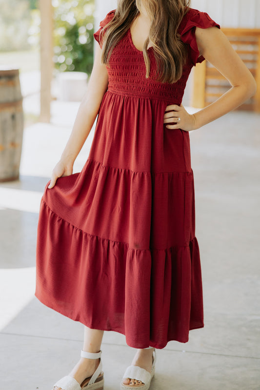 Burgundy Smocked Midi