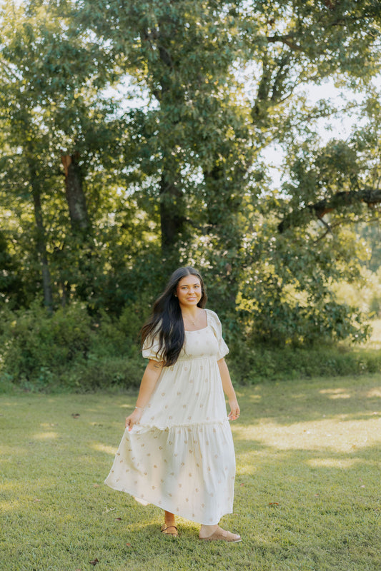 Beige Floral Embroidered Maxi