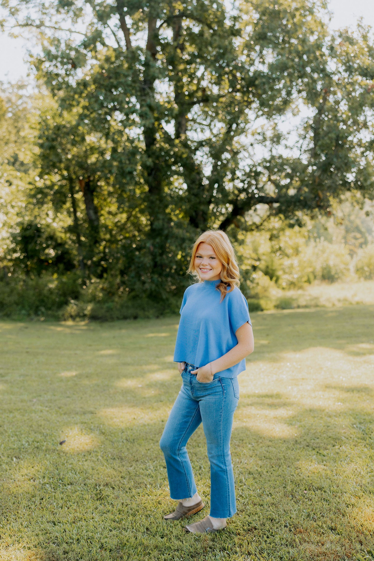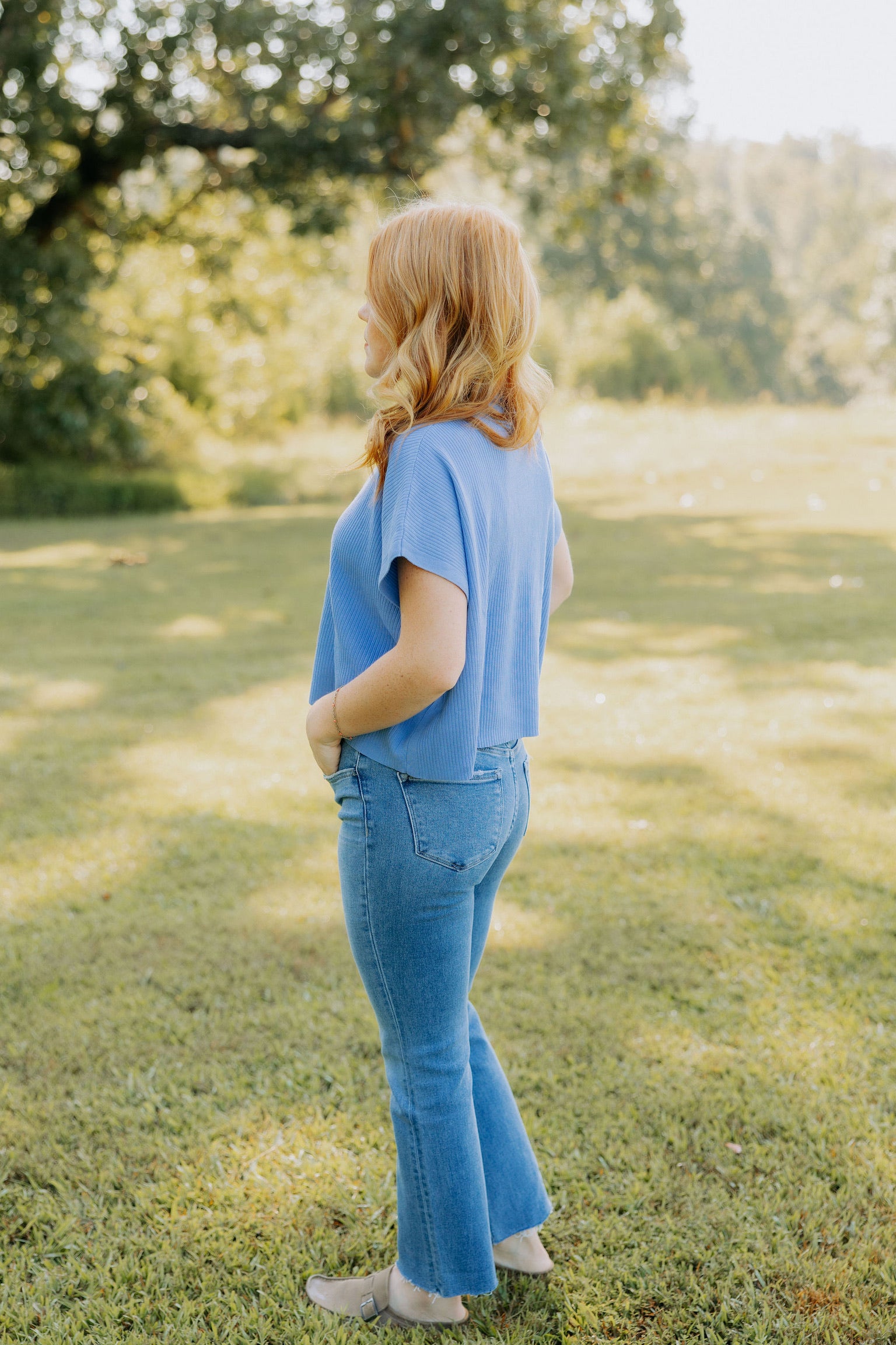 This gorgeous blue top is perfect to wear on those casual days. Hanah is pictured in the small top, top is boxy/slightly cropped.